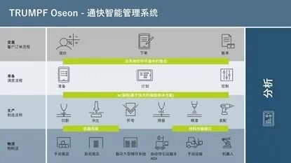 TRUMPF Oseon 軟件確保您在正確時(shí)間、正確位置獲得用戶特定的所有相關(guān)信息。為此,TRUMPF Oseon 將板材加工鏈的生產(chǎn)控制與物流系統(tǒng)的多種優(yōu)勢(shì)相結(jié)合。標(biāo)準(zhǔn)接口確保輕松集成您現(xiàn)有的設(shè)備、自動(dòng)化裝置和系統(tǒng)。從而實(shí)現(xiàn)整個(gè)生產(chǎn)鏈的完整信息流。簡(jiǎn)而言之:流暢工作。