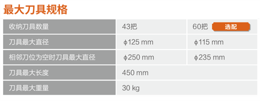 通過(guò)收納時(shí)將刀具傾斜配置,同時(shí)實(shí)現(xiàn)了大直徑刀具、長(zhǎng)刀具的收納,減小機(jī)床的寬度。